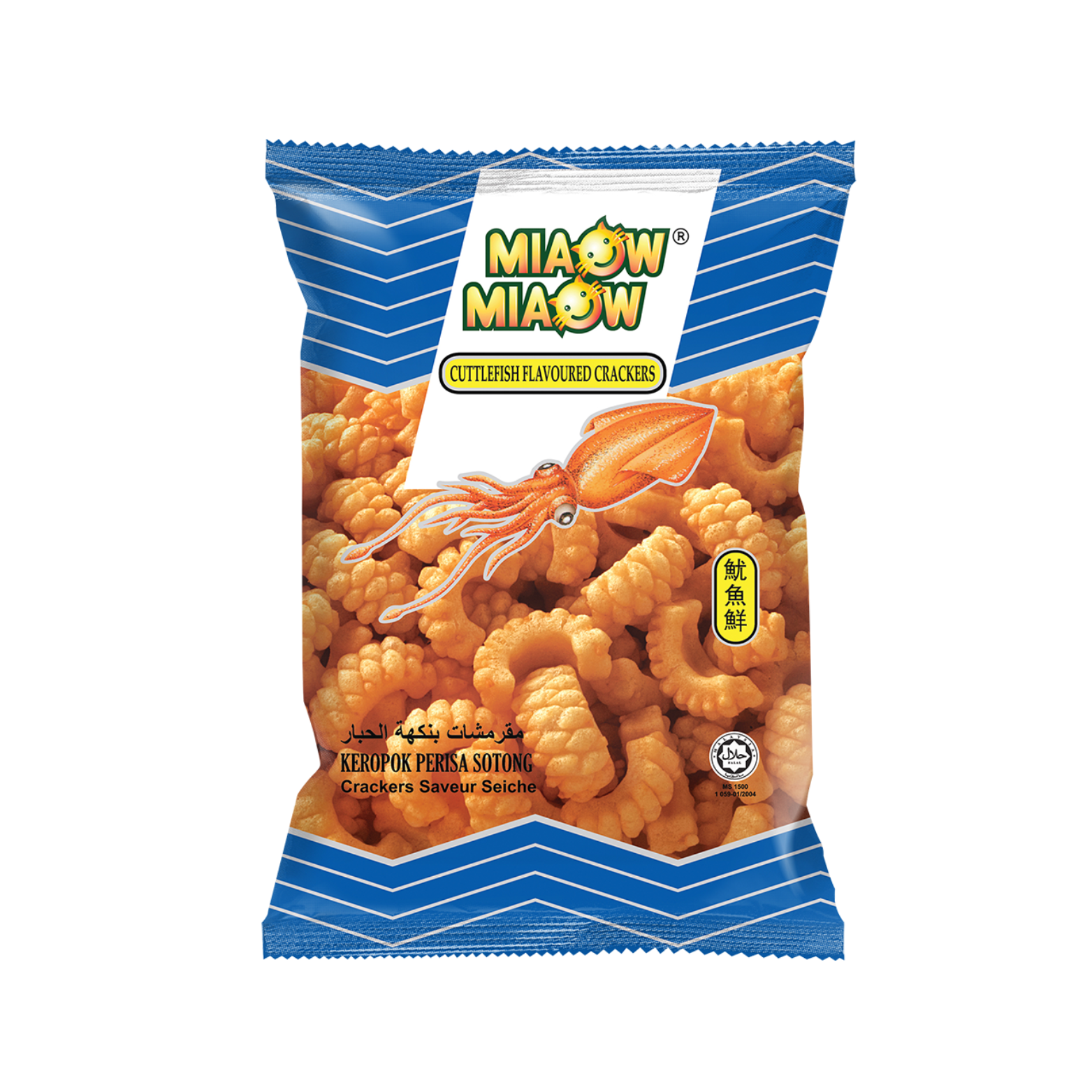 MIAOW MIAOW CuttleFish Flavoured Snack is a nostalgic treat that brings the taste of the sea into your home with its authentic cuttlefish flavour and satisfying crunch. Each piece is carefully crafted to ensure a light, crispy texture while capturing the rich umami of cuttlefish, balanced with a hint of sweetness to enhance its natural savouriness. The flavour profile is layered and comforting, reminiscent of childhood seaside snacks and traditional pasar malam treats, making it a snack that connects you to cherished memories while satisfying your modern cravings. Ideal for sharing during gatherings, tea time, or enjoying on your own as a quick pick-me-up, this snack is versatile and universally loved across all ages. With 20 convenient 60g packs, MIAOW MIAOW CuttleFish Flavoured Snack ensures each serving is fresh and easy to carry, allowing you to enjoy the delightful crunch and umami flavour whenever and wherever you desire.